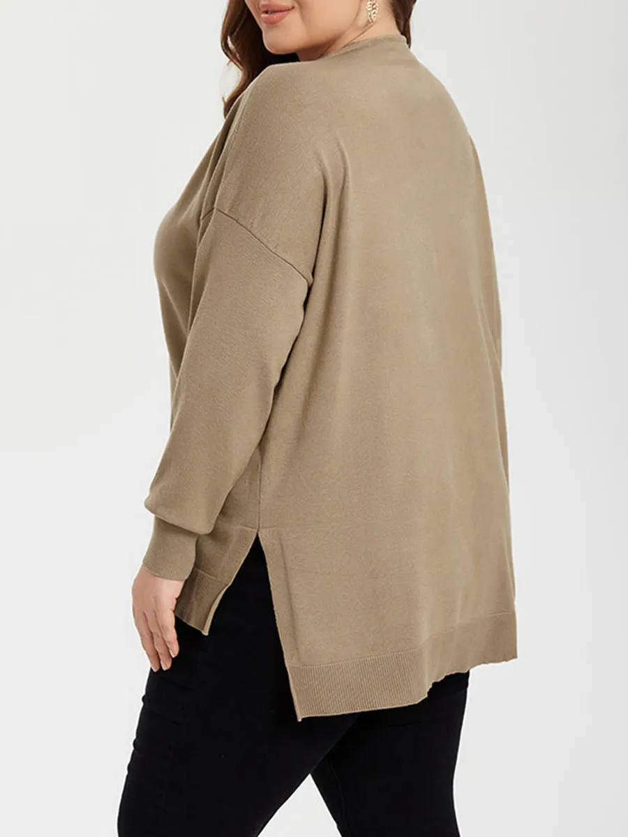 • Solid Drop Shoulder Split Hem Sweatshirt