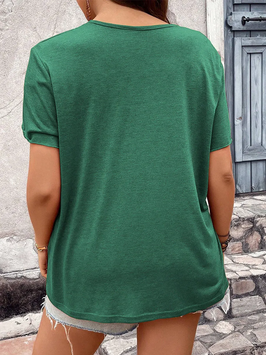 Embroidery Lace V Neck Tulip Sleeve Tee