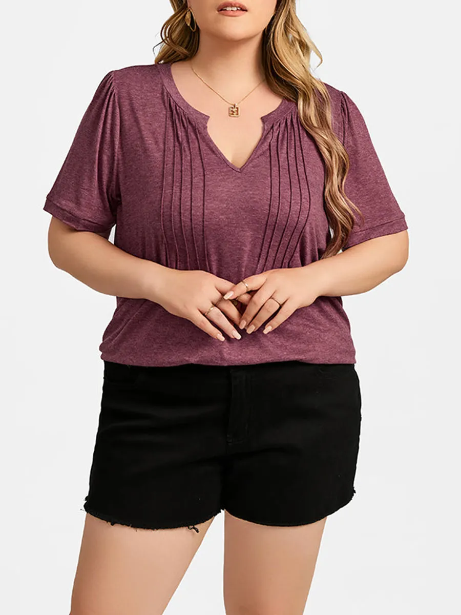 • Plus Ruched V-Neck Ruffle Sleeve Tee