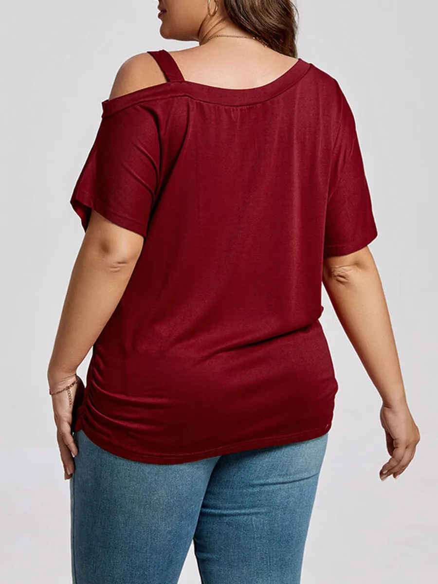 • Plus Wine Red Cold Shoulder Batwing Sleeve Ruched Tee